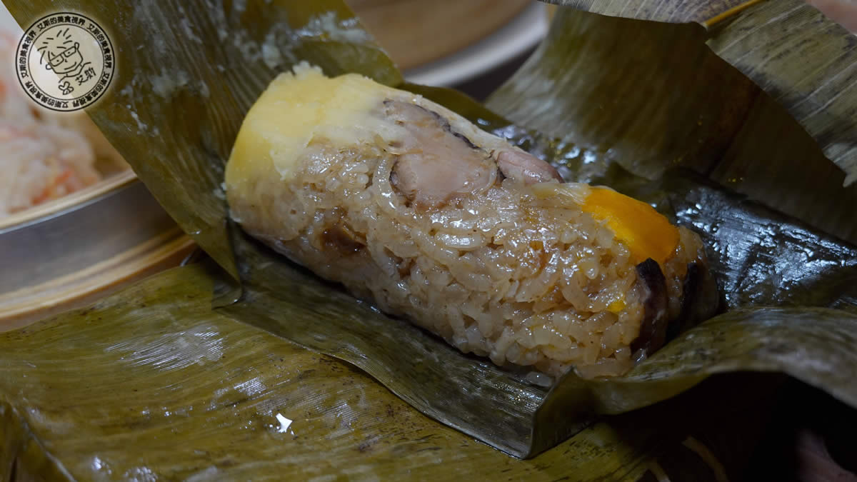 一品蓮香粽:打開荷葉香氣撲鼻,糯米吸收了葉片芬芳,口感綿密。內餡料多實在,蓮子的鬆軟與鹹鮮肉餡完美融合,品嚐得到大廚用心,甜甜鹹鹹的味道我個人還蠻喜歡的~