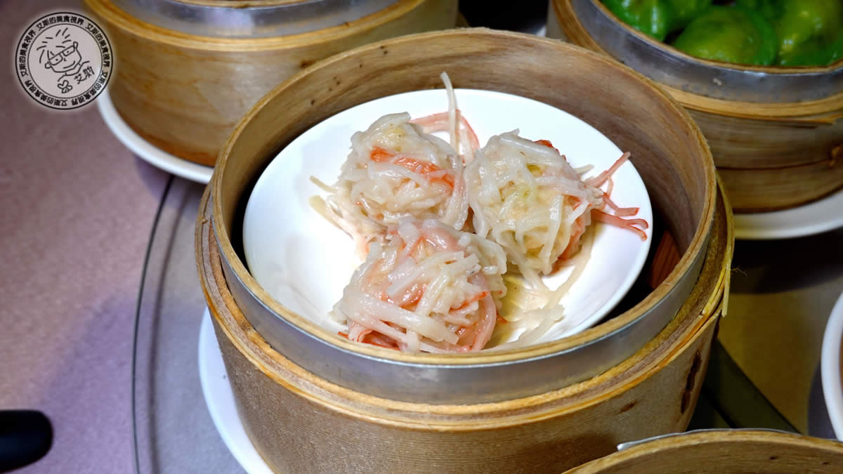 魚子燒賣皇:外皮包裹著緊實豬肉與蝦仁泥,點綴飽滿魚子。入口咬勁十足,肉汁飽滿,魚子鮮味與鹹香內餡輝映,是茶餐廳經典港點之一。