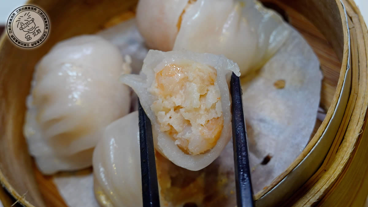 招牌黃金蝦餃皇:餃皮輕薄如蟬翼,透出內裡蝦肉嫩紅。蝦肉份量驚人且脆彈鮮美,不沾醬即能品嚐大海原味,鮮味滿滿。