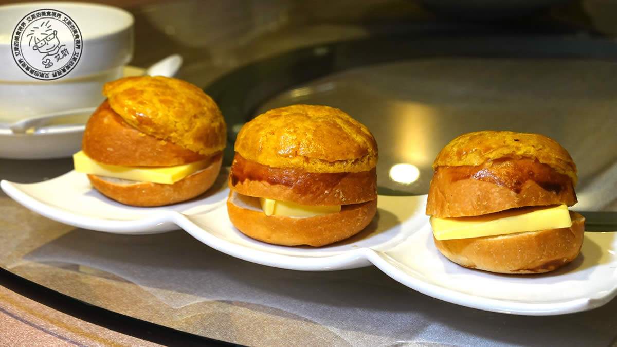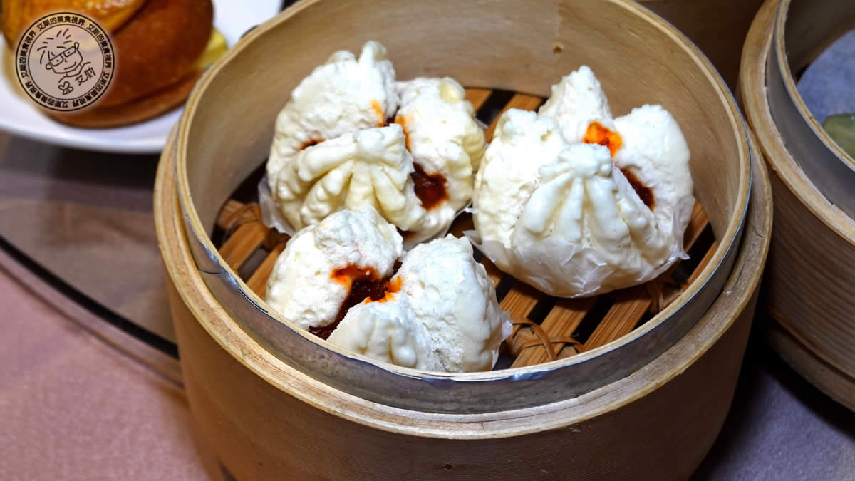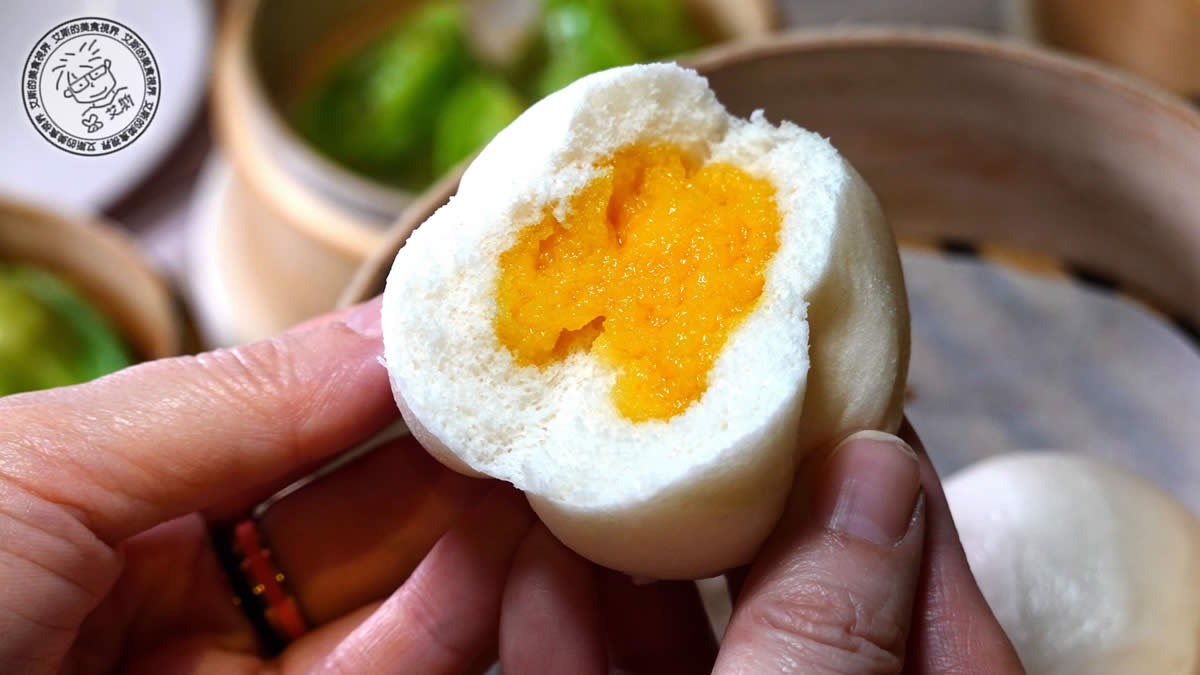爆漿流沙包:這道一定要趁熱吃,撕開時才會有金黃鹹蛋黃流沙傾流而出,不要像我們拍太久導致不太流了。外皮Q彈內餡質地細滑且帶有細微沙質感,鹹甜碰撞出驚喜。