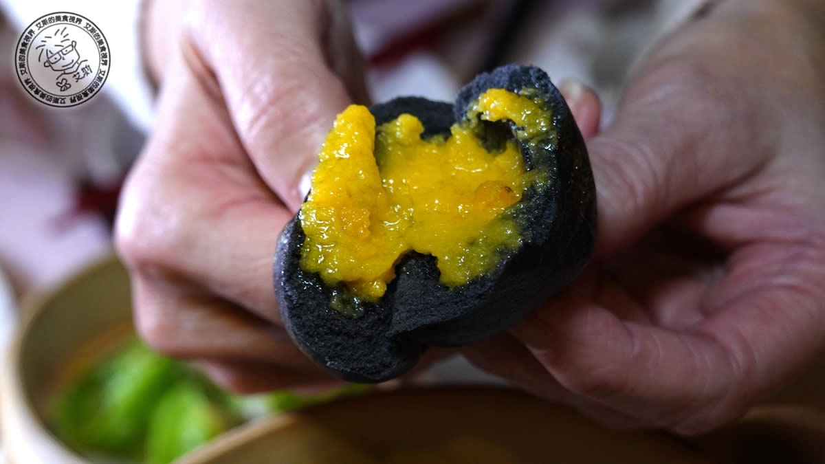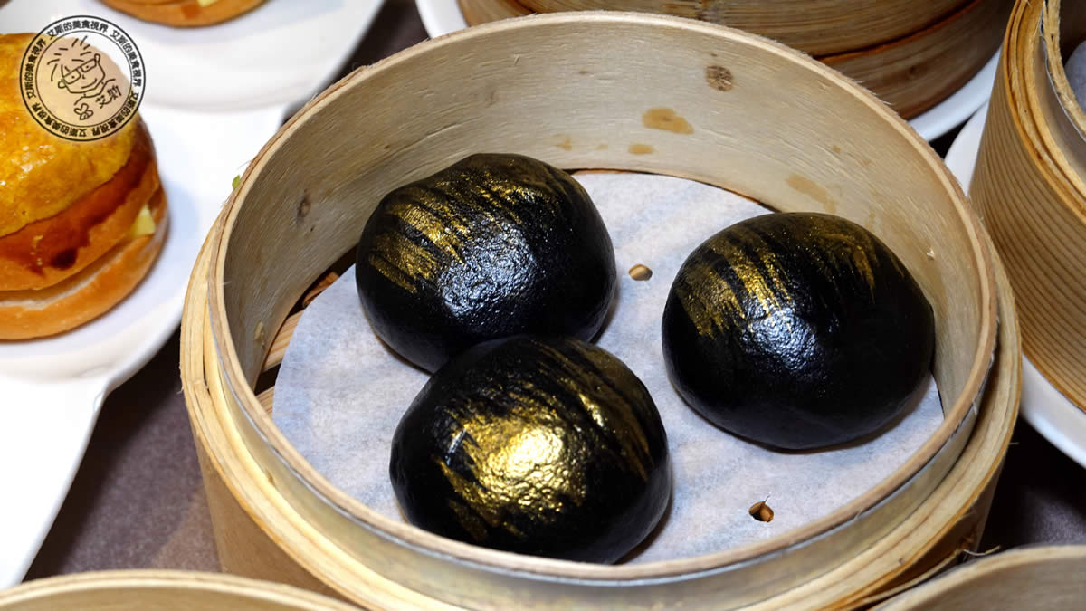 烏金流沙包:質感黑色外皮刷上金點,貴氣十足。內裡包覆熱騰騰爆漿流沙,鹹甜風味比起一般流沙包多了一分視覺華麗,是打卡拍照的首選。