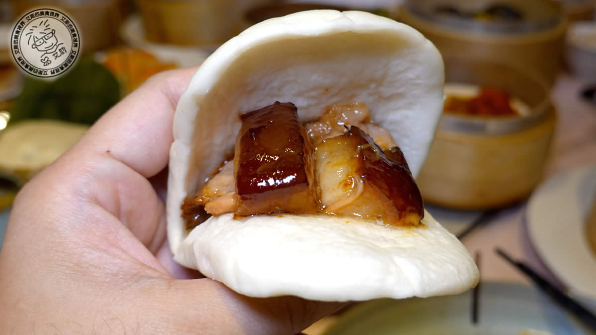 蠔皇叉燒包:開口笑外皮鬆軟如棉花。內餡使用頂級蠔油熬煮叉燒,醬汁均勻包裹肉塊,鹹甜交錯滋味與包皮麵香完美合一,體現港點靈魂。這道是我從小到大到茶餐廳看到必點的!