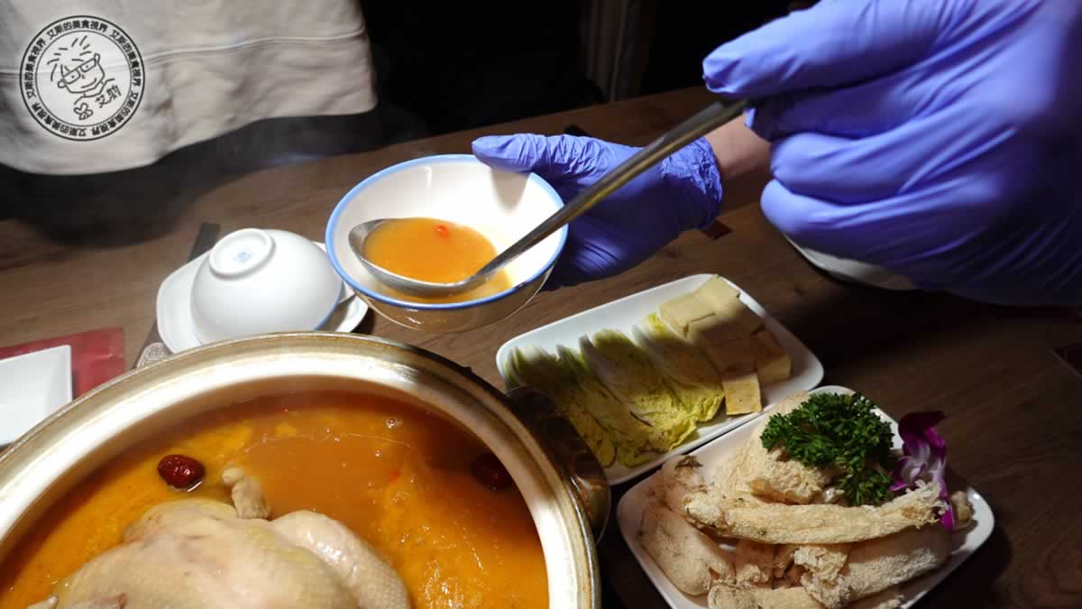 ▲ 雞湯上桌後服務人員會先舀一碗給客人喝試試看純粹的雞湯