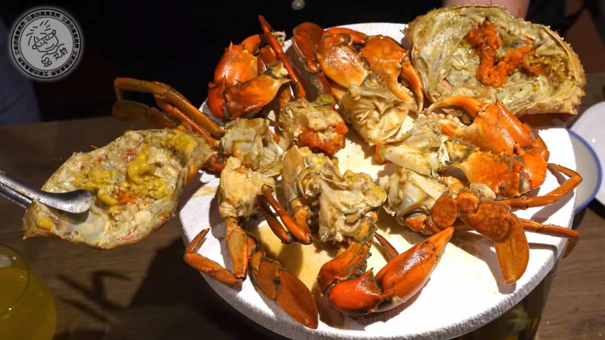 沒想到這次還遇到沙公或沙母買一送一的活動,朋友說要現場跟服務人員詢問,不是每天都有的活動,這天我們很幸運,剛好遇到這天最後兩隻的沙母,一開起來我們整桌都驚呼了,滿滿的蟹黃都在螃蟹的肚子裡,今天真的非常幸運吃的非常滿足!