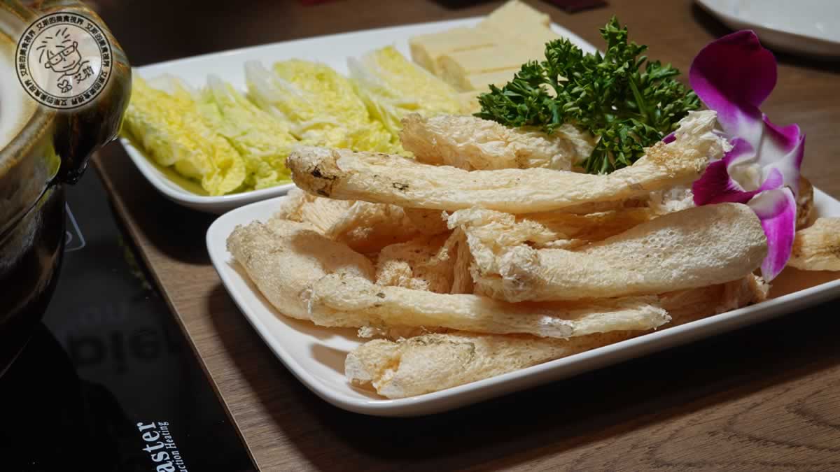 野生竹笙吸湯力強,滑嫩細緻,當它吸滿湯汁一口咬下就會在嘴巴裡爆漿,吃起來爽感十足;凍豆腐和娃娃菜配料帶來清爽口感,涮過雞湯後更富風味!