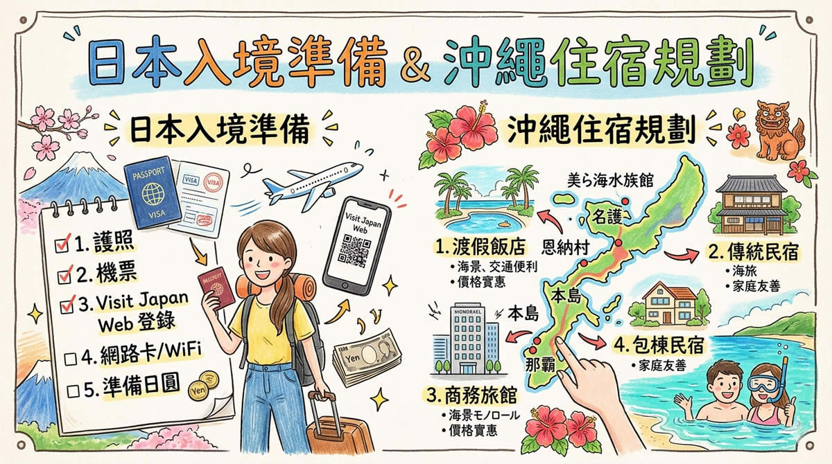 - 沖繩住宿規劃: 沖繩地形狹長,住宿建議「分區安排」以節省車程: