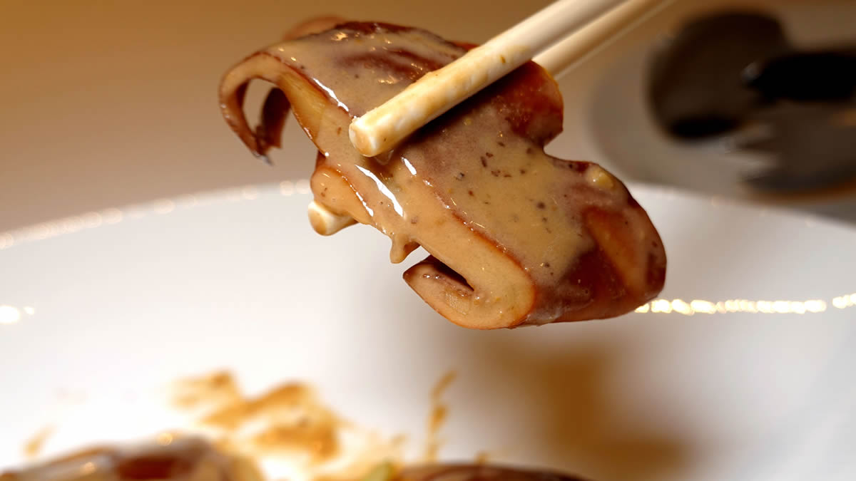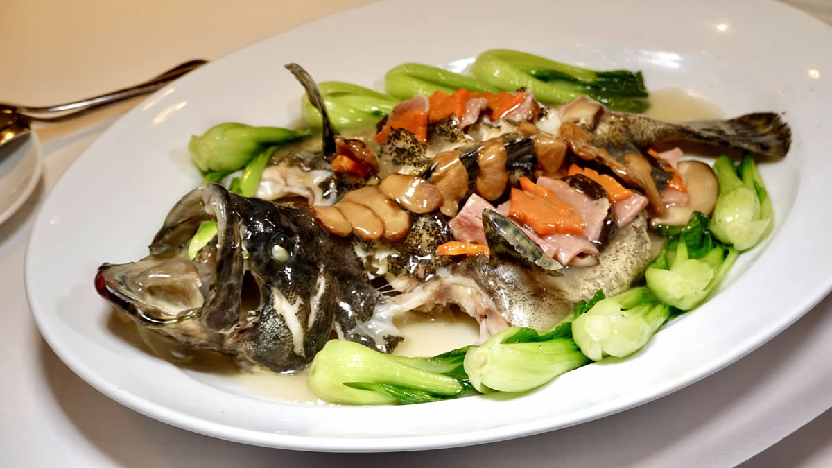 龍虎斑肉質細緻,蒸得恰到好處,入口仍保有水分與彈性。松茸的香氣不搶戲,而是慢慢在尾韻浮現,讓整道魚多了一層高級感。調味走清蒸路線,簡單卻不單調,能吃出魚本身的甜味。這道非常適合放在宴席後段,清爽收斂味蕾,也讓整桌菜的節奏更平衡。