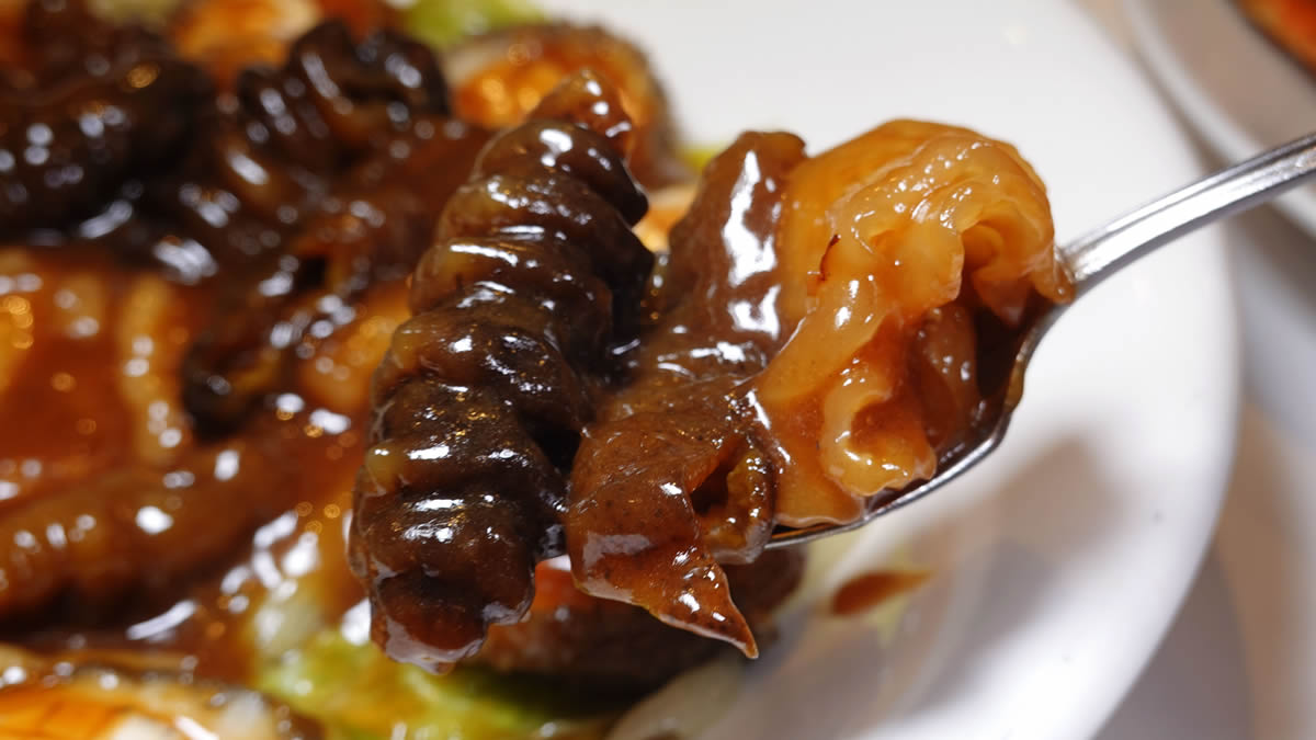 這道是標準的粵菜功夫菜,醬色油亮卻不死鹹。鮑魚口感彈中帶嫩,海參與花膠吸飽醬汁卻依然保有層次。紅燒醬汁厚實卻不膩,能感受到長時間熬製的深度。這種菜色不追求花俏,而是靠火候與比例取勝,也正是歐華軒這類老字號餐廳最讓人信任的地方。