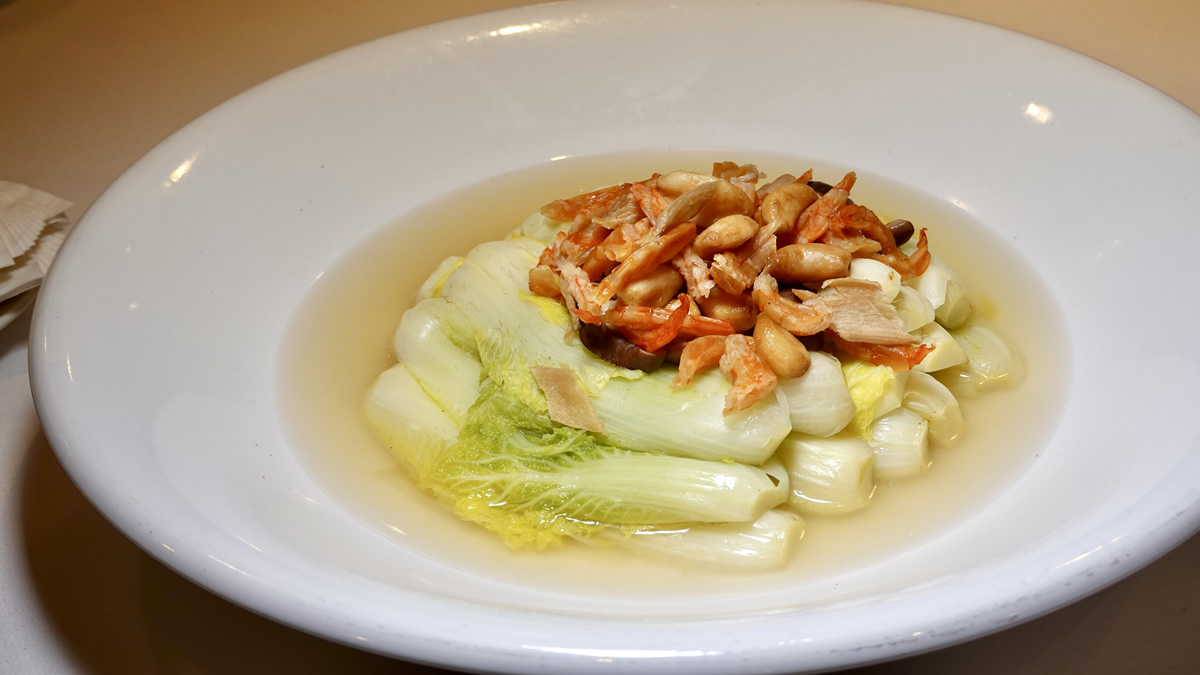 看似清爽的一道配菜,其實細節不少。大澳蝦乾帶出的海味自然融入蔬菜中,讓原本單純的時蔬多了層次。蔬菜保持爽脆,不會過熟,調味輕盈卻不單薄。這道在一連串大菜之後顯得特別重要,讓味蕾有喘息空間,也讓整桌菜吃起來更耐吃、不易膩口。