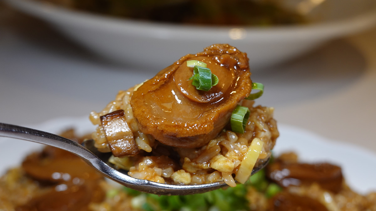 米飯粒粒分明,拌入雞粒與鮑魚後,香氣自然融合。調味不重,但每一口都吃得到食材的鮮味與油香。撈飯本身不搶戲,卻很實在,會讓人不知不覺多吃幾口。放在宴席後段非常剛好,既有飽足感,也不會太負擔。
